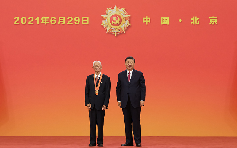 6月29日,慶祝中國共產(chǎn)黨成立100周年“七一勛章”頒授儀式在北京人民大會(huì)堂金色大廳隆重舉行。中共中央總書記、國家主席、中央軍委主席習(xí)近平向“七一勛章”獲得者呂其明頒授勛章。新華社記者 李學(xué)仁 攝
