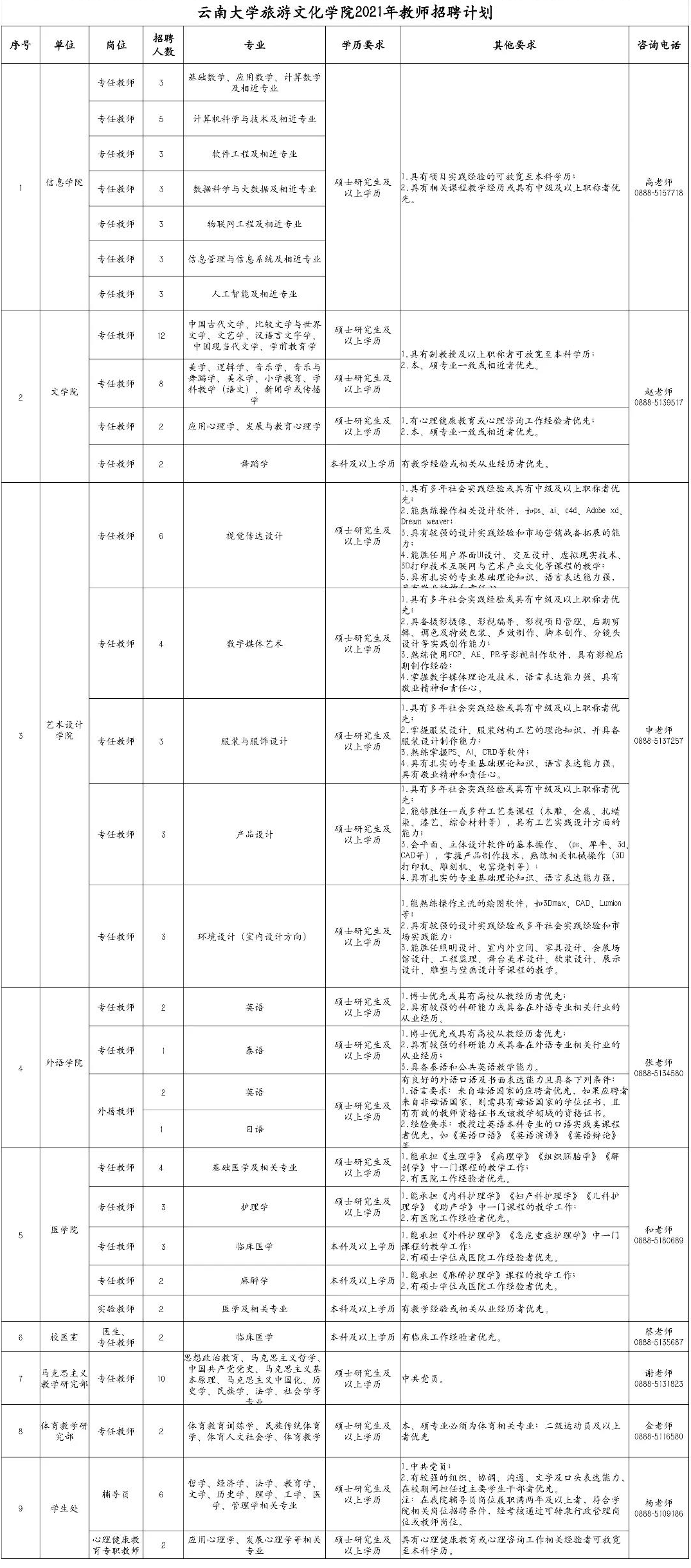 云南大學旅游文化學院2021年招聘啟事