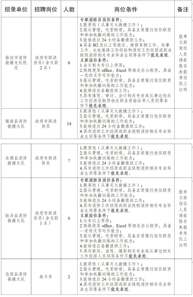 臨滄市消防救援支隊(duì)2021年公開(kāi)招聘政府專(zhuān)職消防員的公告