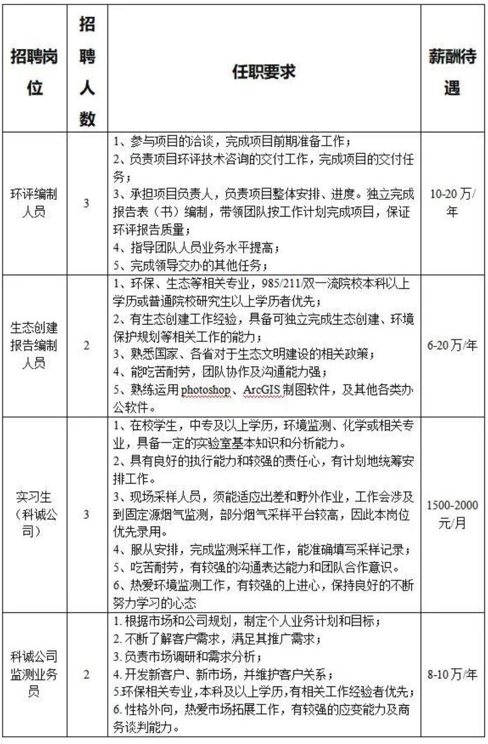 招聘崗位及要求