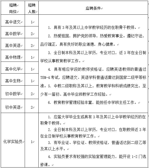 注:男教師年齡在40歲以下,女教師年齡在35歲以下。滿足以下條件之一并取得相關(guān)證件者,年齡可適當(dāng)放寬,同等條件下予以優(yōu)先考慮。