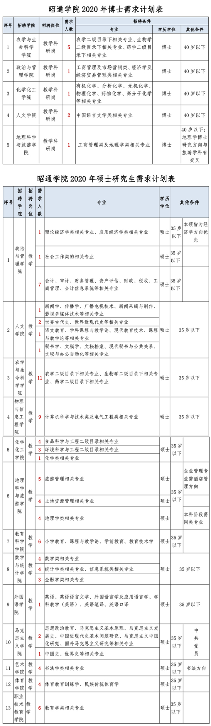 各教學學院招聘人數(shù)、專業(yè)等具體要求,以昭通學院后續(xù)發(fā)布的招聘工作的相關(guān)公告為準。