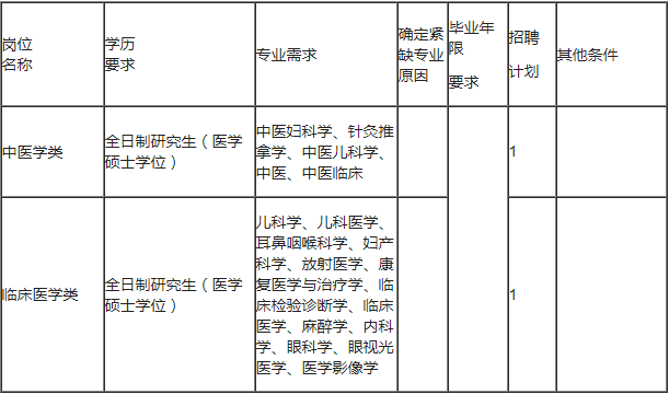 (二)市婦幼保健院。引進崗位2個,其中中醫(yī)學類1個,臨床醫(yī)學類1個。